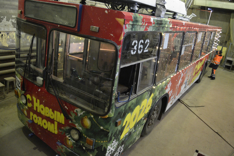 Ивановское МУП «ИПТ» (городской троллейбус) к Новому году традиционно разрисовало и украсило гирляндами пару троллейбусов, которые в праздники будут курсировать по маршрутам 6, 8 и 11. Одна из машин получила на борт несколько неожиданный сюжет: Дедушка Мороз с мешком подарков во весь дух улепётывает от детишек. Возможно, так иллюстрируется запланированная троллейбусная лотерея «Счастливый билетик», дескать, подарок достанется не всякому.